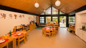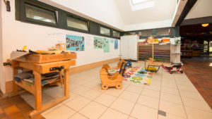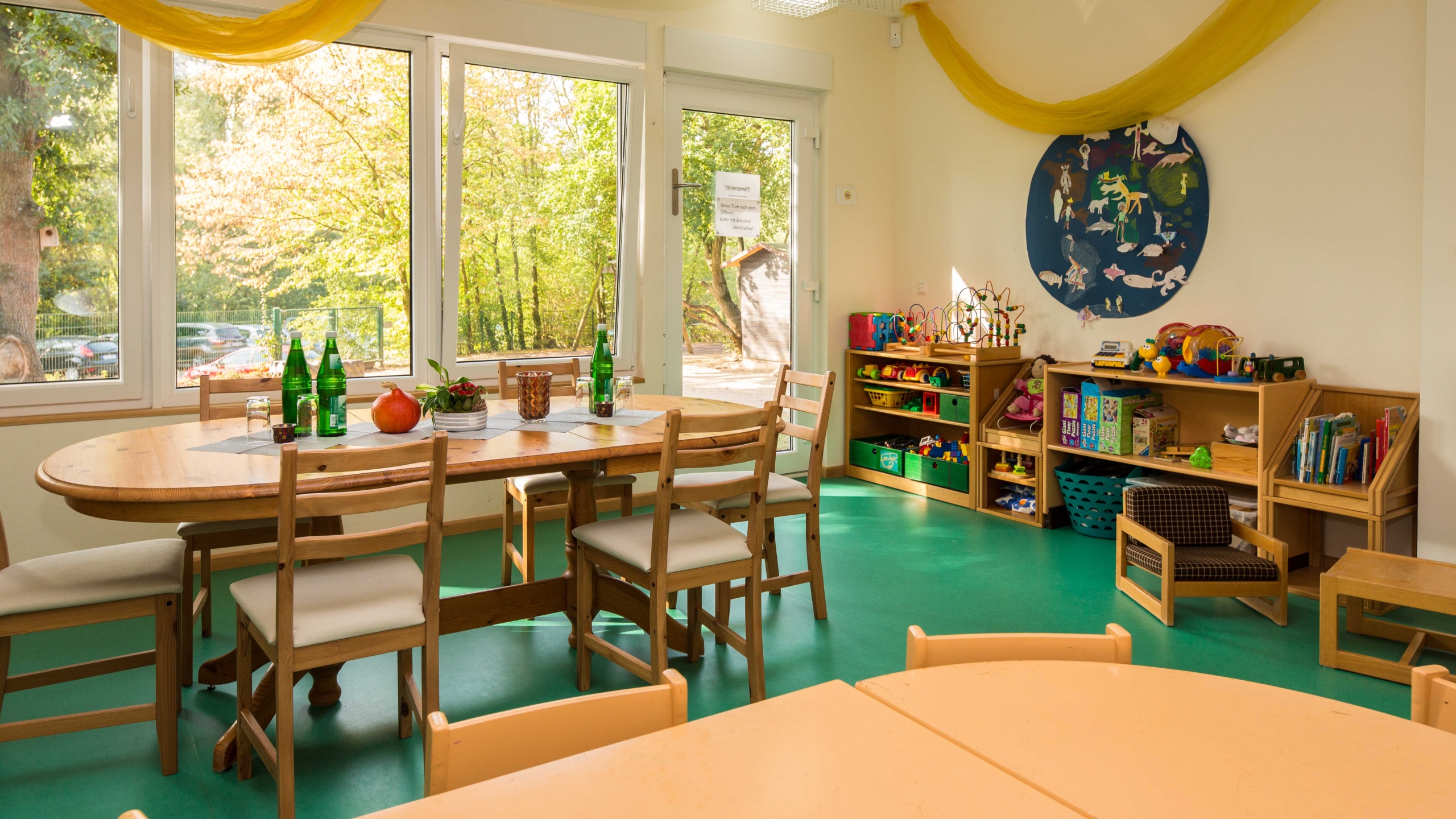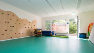 Unsere Einrichtung verfügt über drei große Gruppenräume mit Nebenräumen, die individuell gestaltet sind. Der Flur ist großzügig gestaltet, sodass dieser auch als Spielfläche bzw. Bewegungsraum genutzt wird. Angrenzend an den Flur befindet sich ein Logopädie-Raum, Personalraum, Forscherraum, ein Schlafraum, eine Künstlerecke und die Küche, in der jeden Tag frisch für das Mittagessen gekocht wird. Zusätzlich steht für alle noch ein Mehrzweckraum als Bewegungsraum und ein Beratungsraum zur Verfügung.
