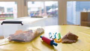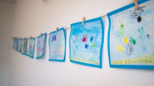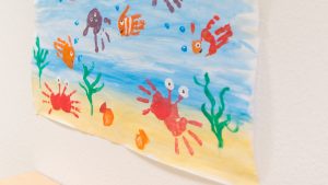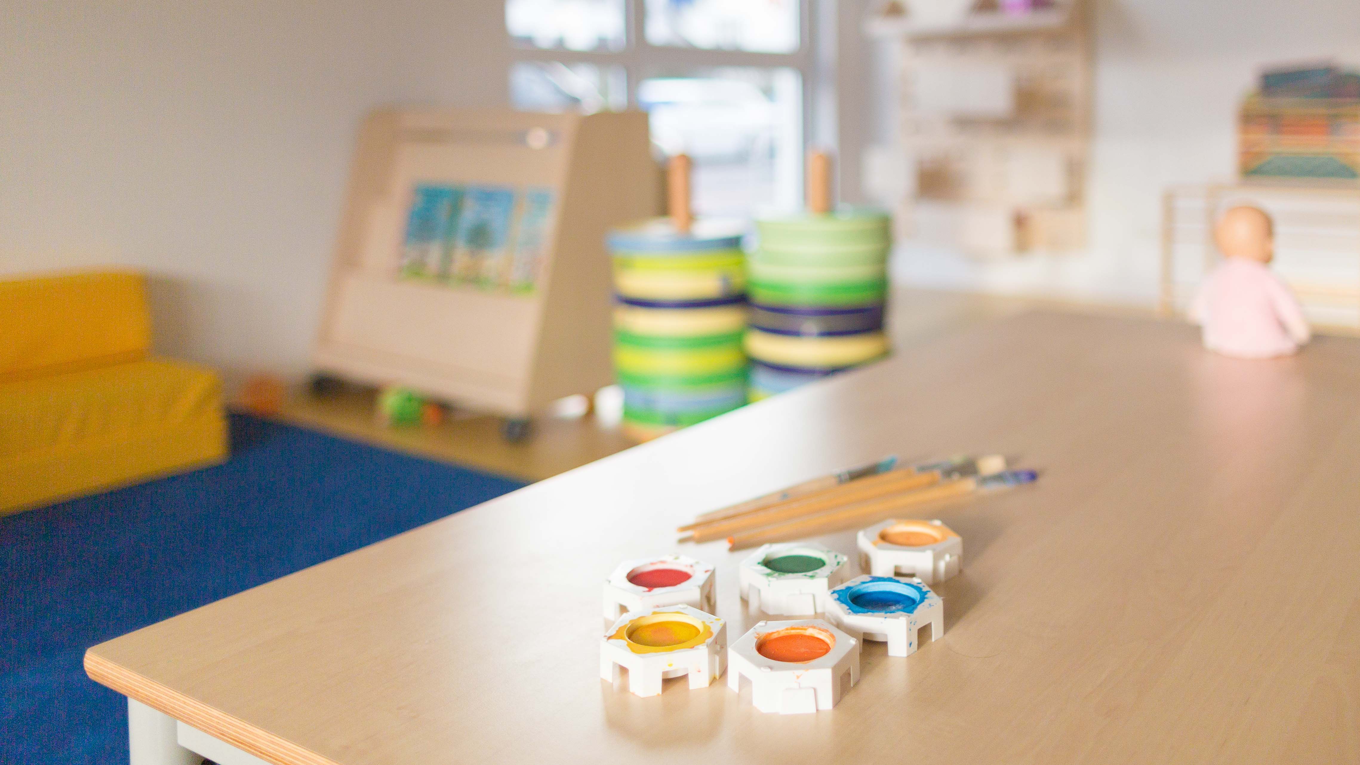 So gibt es eine Kreativwerkstatt, in der die Kinder die Möglichkeit zum ersten Werken, Forschen oder Experimentieren sowie zum großflächigen Malen mit Wasser- und Fingerfarben haben.