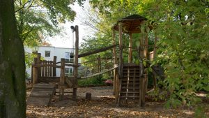 Ein Rutschenhaus, eine Nestschaukel und ein „Märchen-“und Spielehaus laden die Kinder zum Bewegen und Erkunden ein.