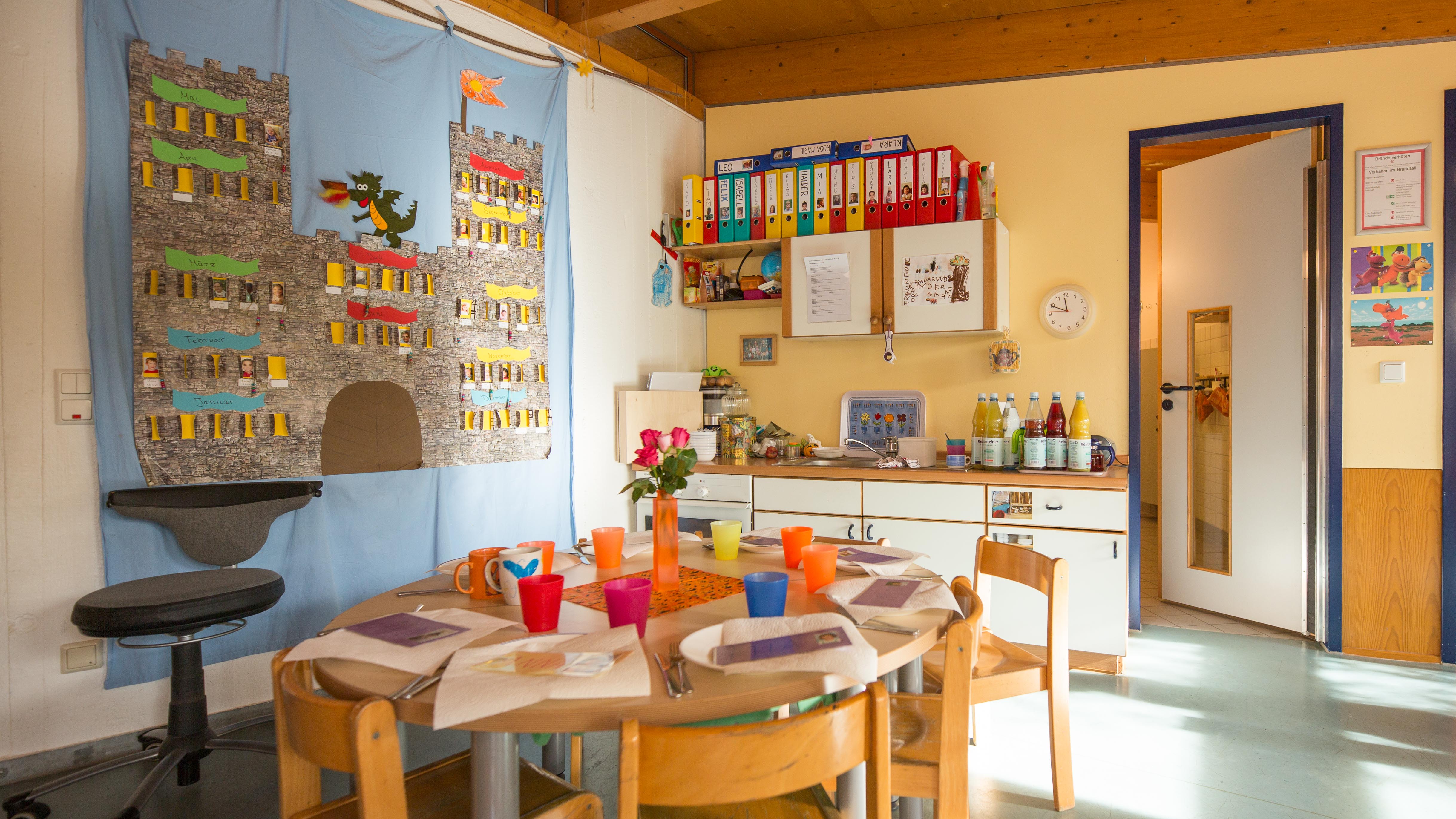 Die Kinder sind in zwei altershomogene Gruppen aufgeteilt. Die Gruppe „Drachennest“ besuchen die ca. 2- bis 4-jährigen Kinder, die dann mit dem entsprechenden Alter in die Gruppe „Drachenburg“ wechseln. Die Gruppe „Drachenburg“ wird bis zum Schuleintritt besucht.