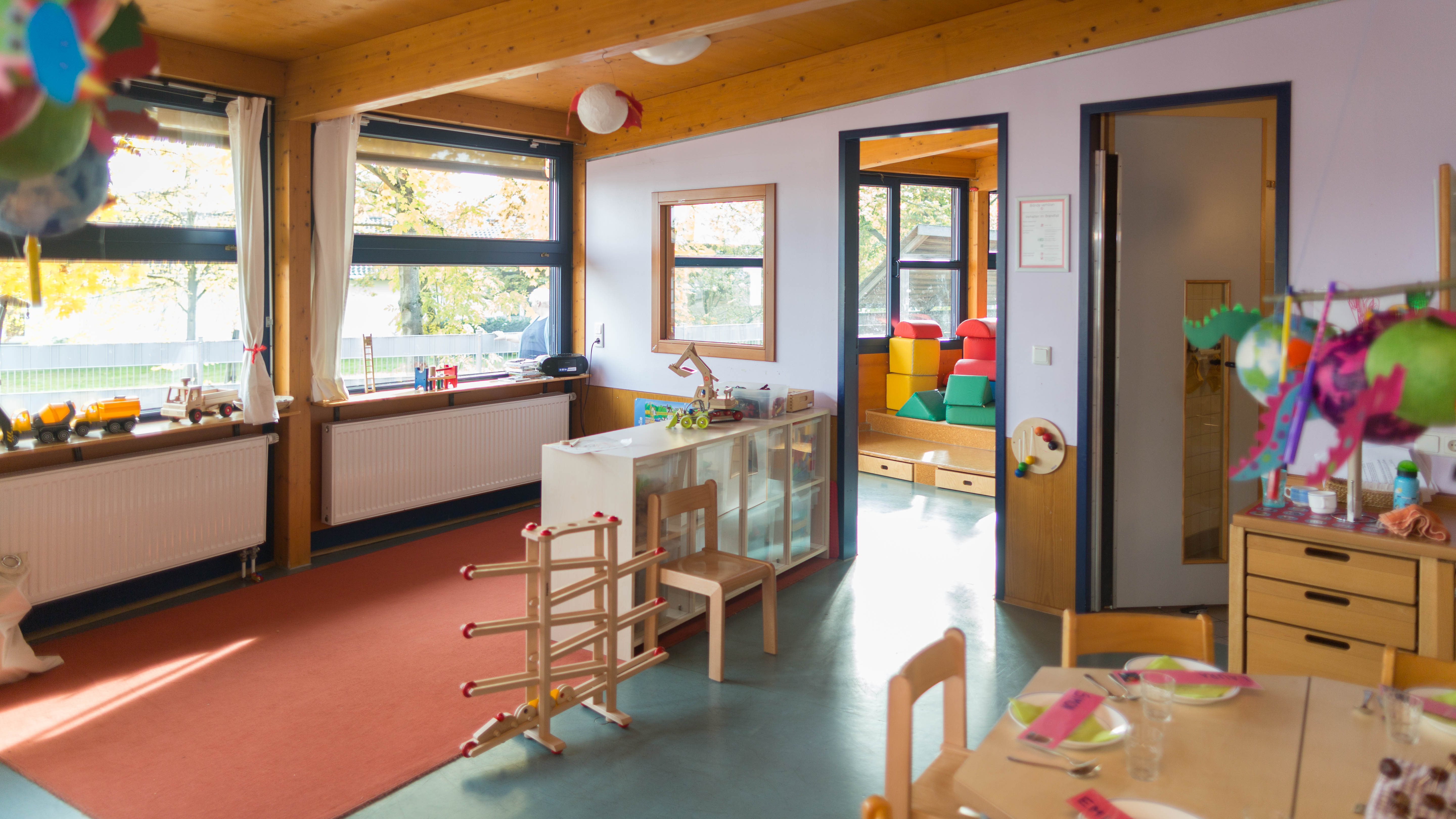 • Zwei Gruppenräume, in denen die Kinder sich zu „Hause“ fühlen dürfen und ihre Bezugserzieherinnen finden, mit jeweils einem Nebenraum, der Rückzugsmöglichkeiten für ungestörtes Spiel bietet